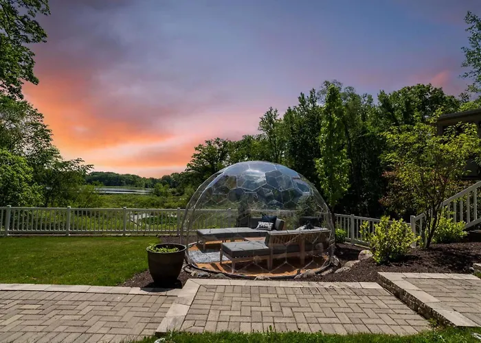 Nestled alongside the breathtaking waters of a pristine lake, the Valparaiso Lakeside Retreat offers an idyllic escape just 85 km from Midway International Airport. This enchanting retreat harmoniously blends luxury with the tranquility of nature, ensuring guests experience both comfort and serenity from the moment they arrive. The accommodations at Valparaiso are designed to captivate, featuring well-appointed rooms with king-size beds that provide stunning views of the serene lake. Guests can enjoy a restful night's sleep surrounded by elegant decor and modern amenities, creating a perfect atmosphere for relaxation and rejuvenation. Each room serves as a private sanctuary to unwind after a day of exploration.